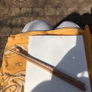 ノートは家族が買って使っていなかった余り物。株式会社デザインフィル ミドリカンパニーの方眼罫ノートです。軟かい紙質、軽さが気に入っています。マイ箸はpatagonia。飛騨の森から生まれたものです。