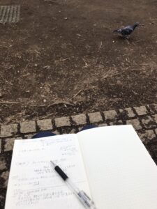 この日は曇り→小雨で寒々しい公園でした。ボールペンはZEBRAの油性ボールペンを持ち歩き。これも家にあった余り物。